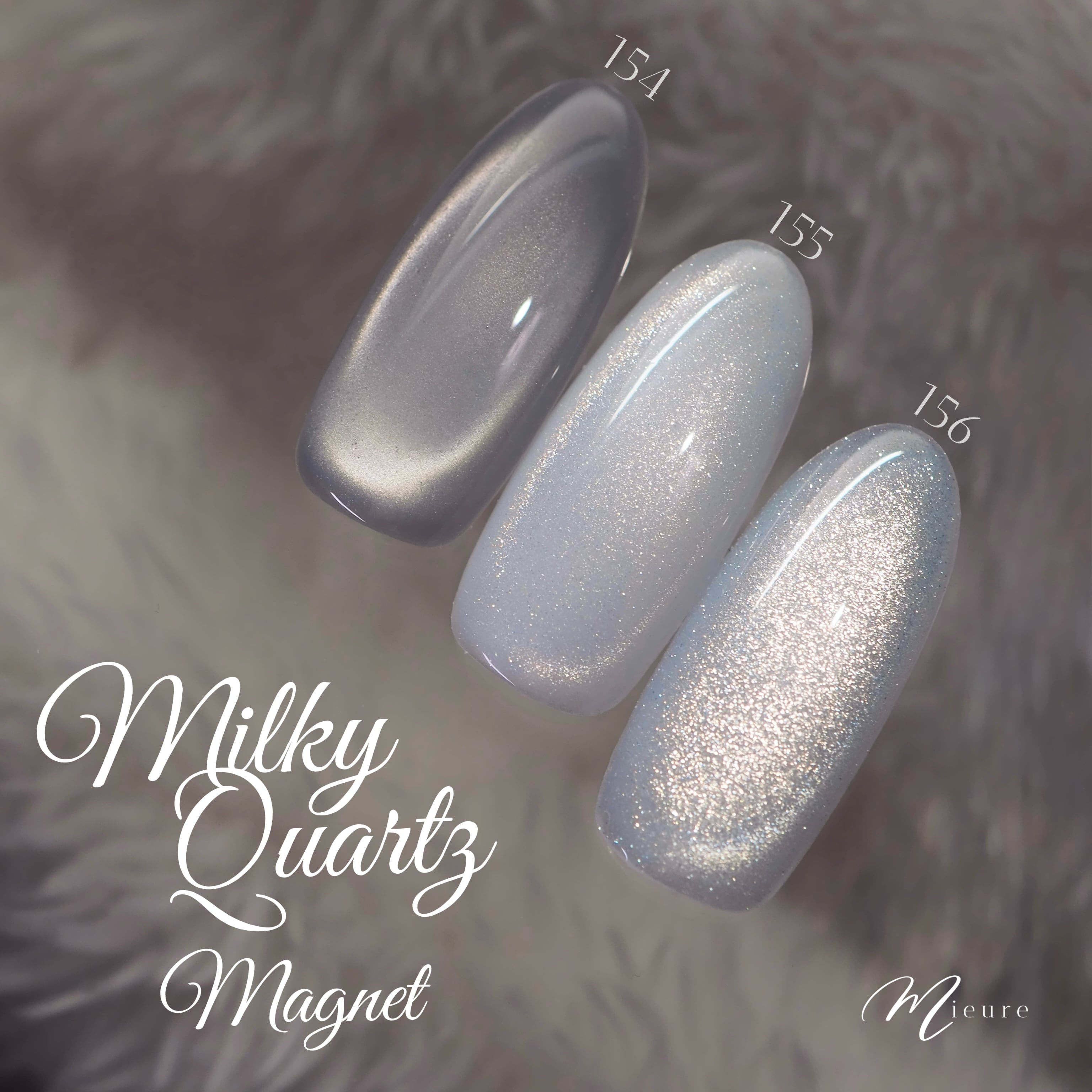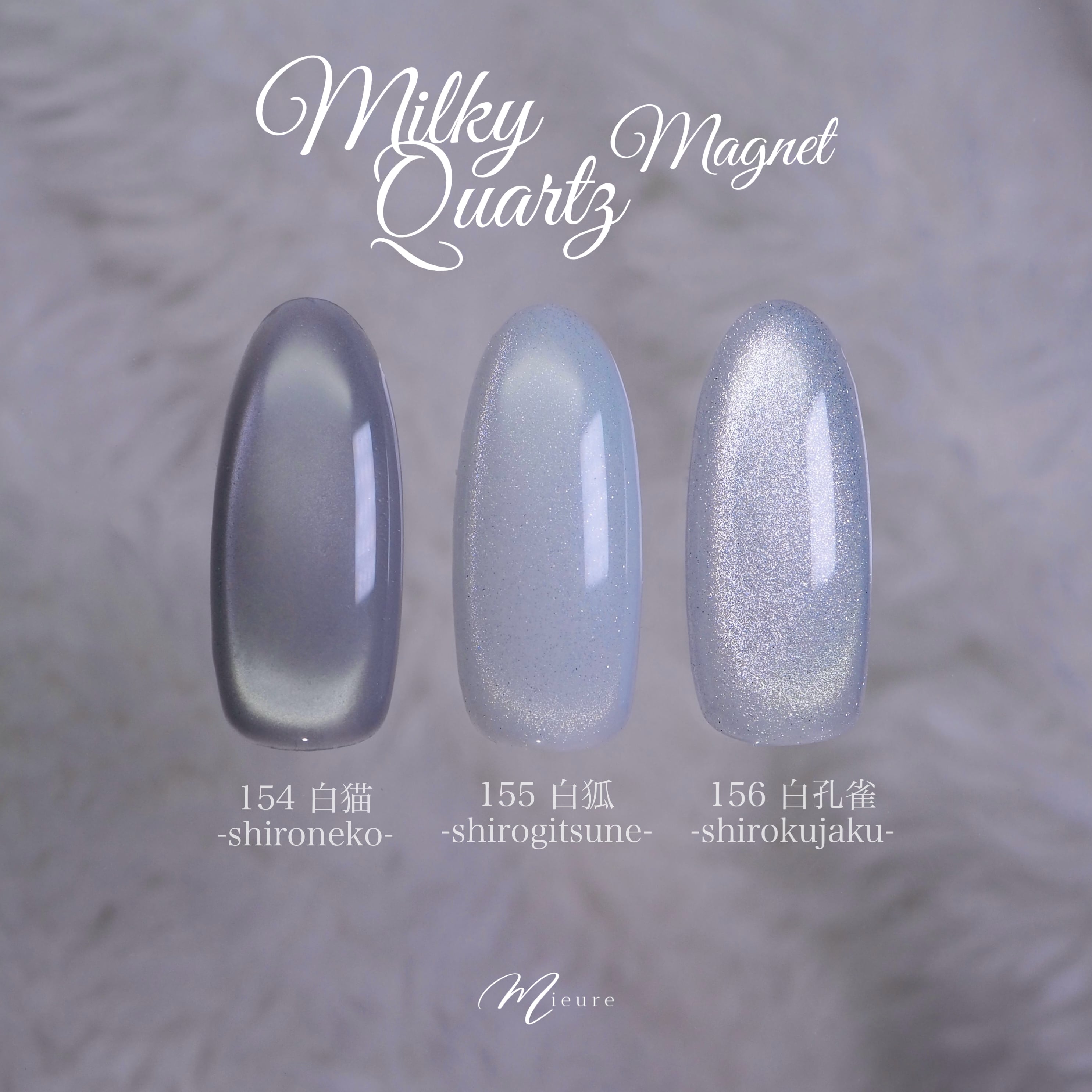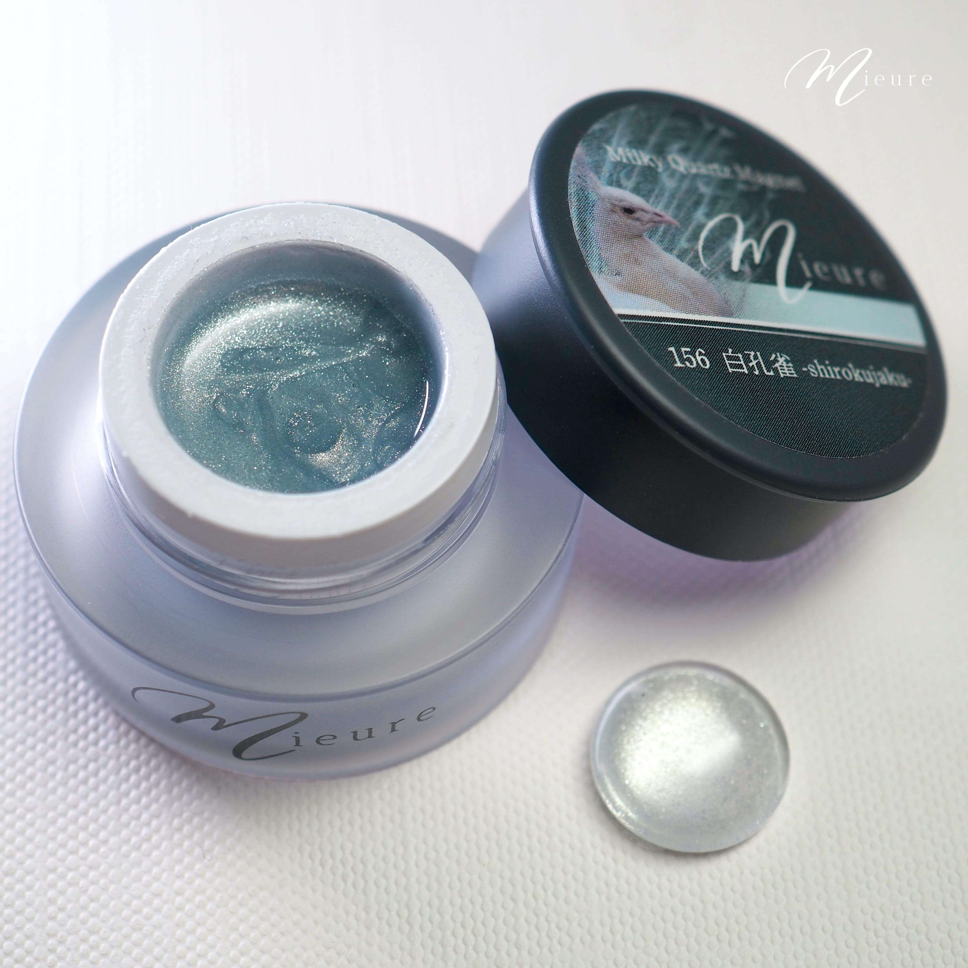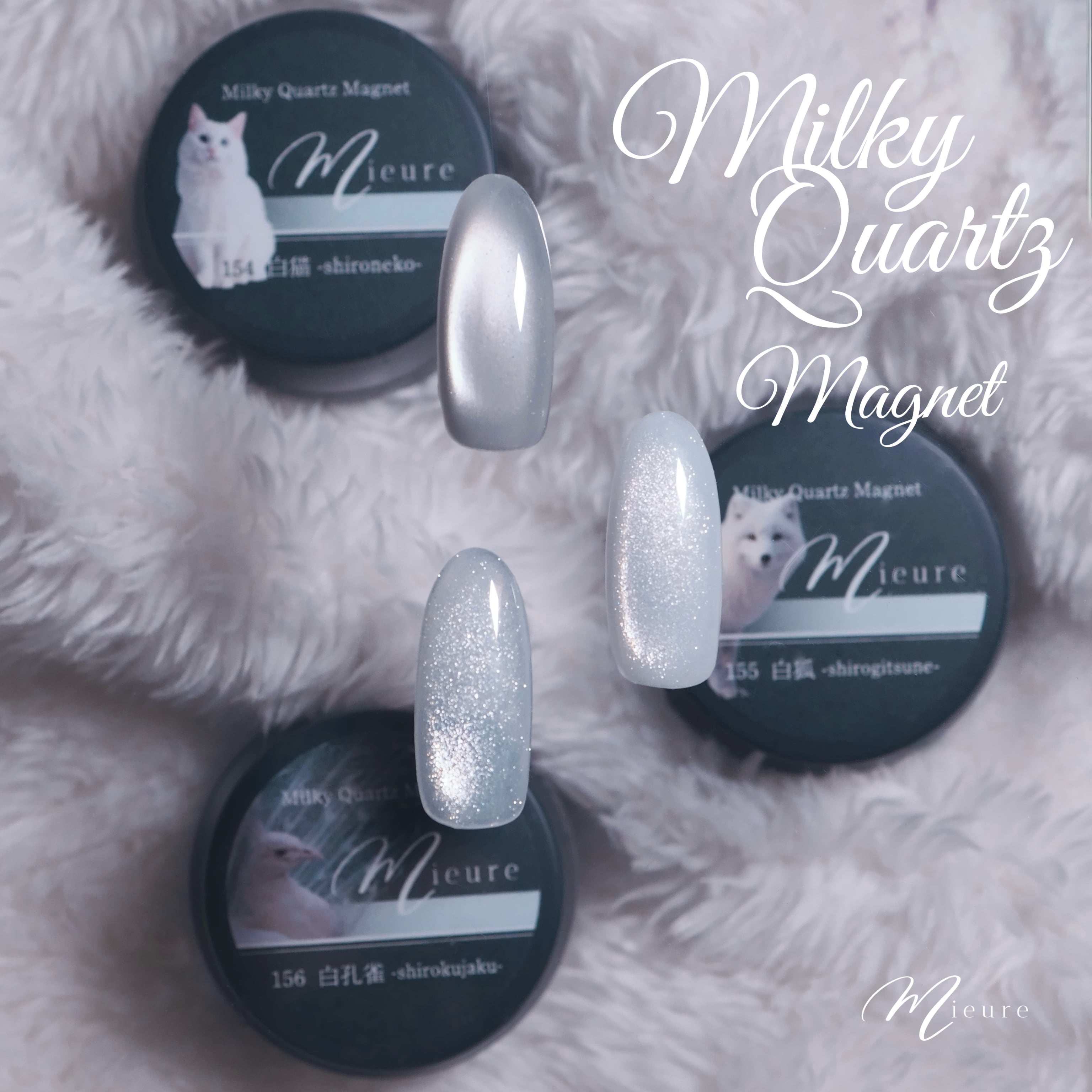 透明感の強い青みがかったホワイトに、粗目な粒子のマグネットパウダーが強い輝きを放ちます。