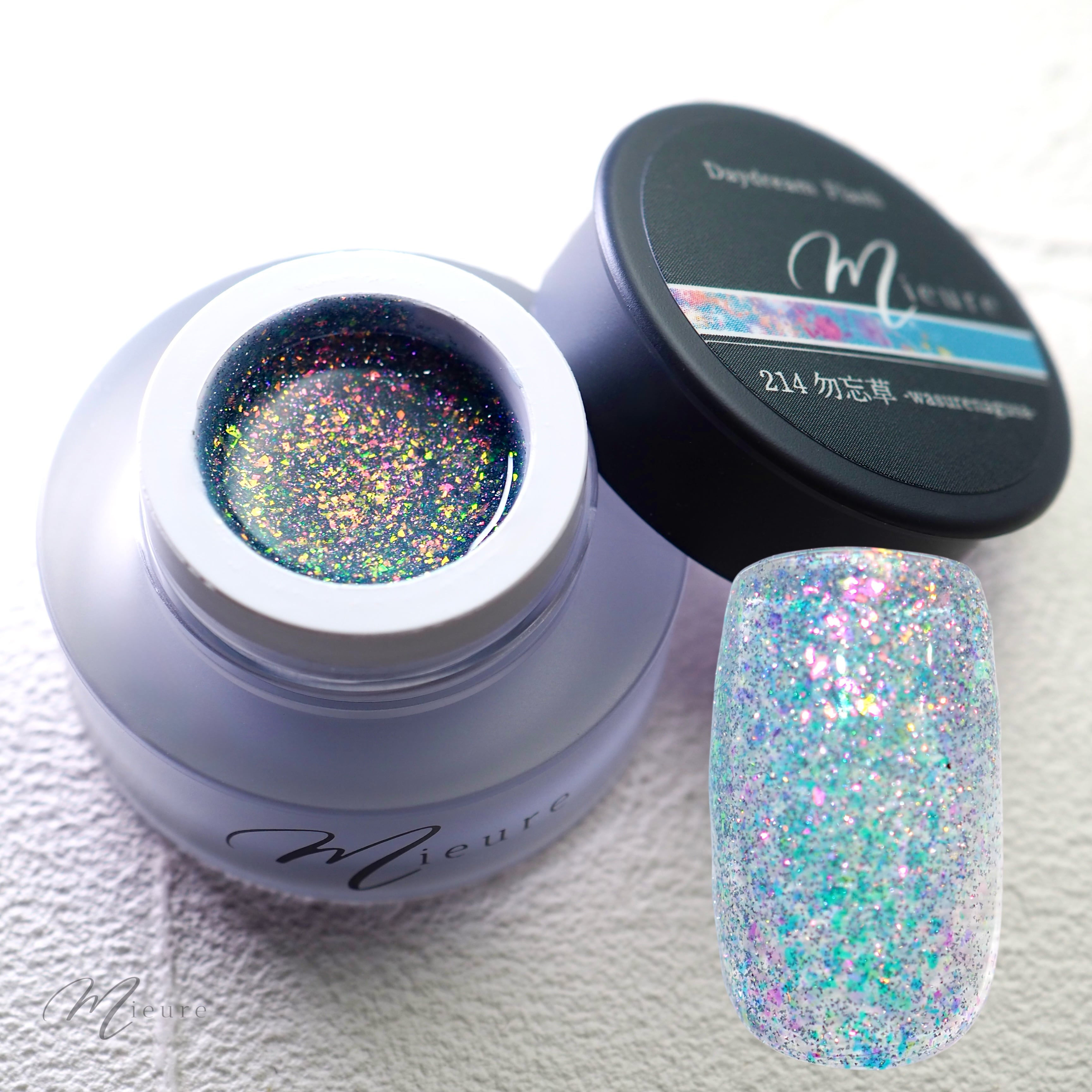 ピンクやパープル、オレンジに輝くフレークとたっぷりのフラッシュパウダーが宝石のように輝きます。
